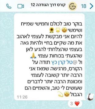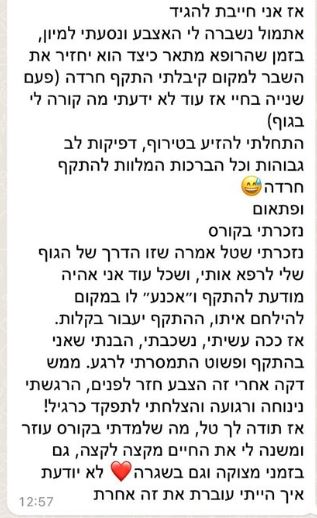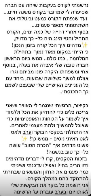 "מה שלמדתי בקורס עוזר ומשנה לי את החיים מקצה לקצה"
